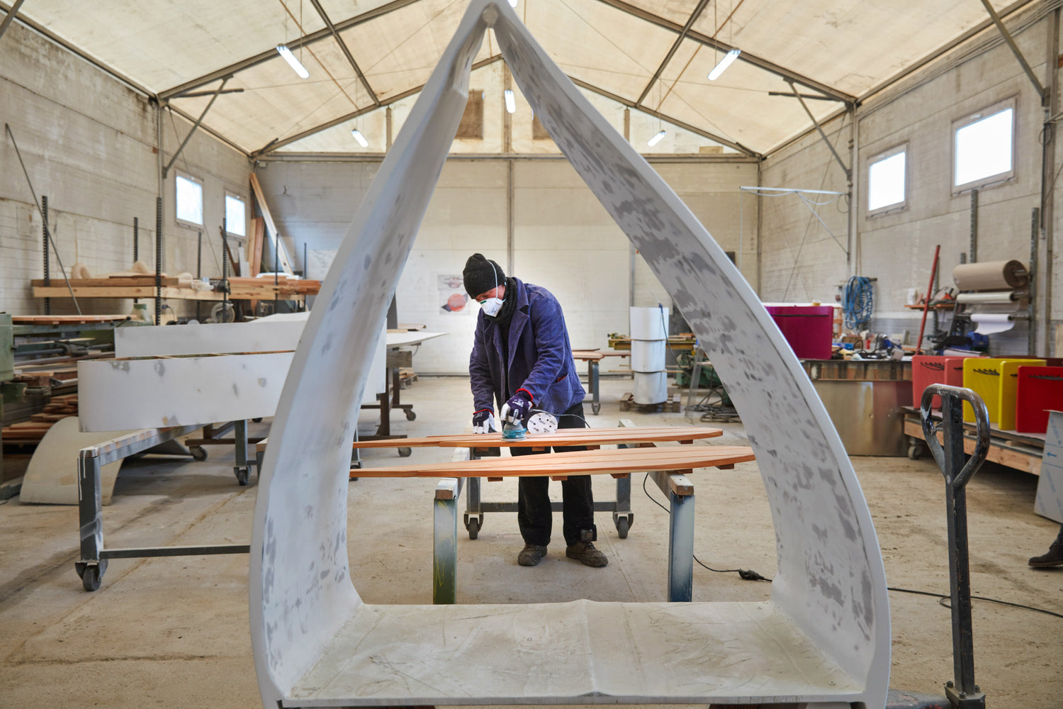 Our outdoor furniture is individually handmade in a European manufactory. In the process, no two rotor blades are alike. Therefore, the pieces of furniture are as unique as you.