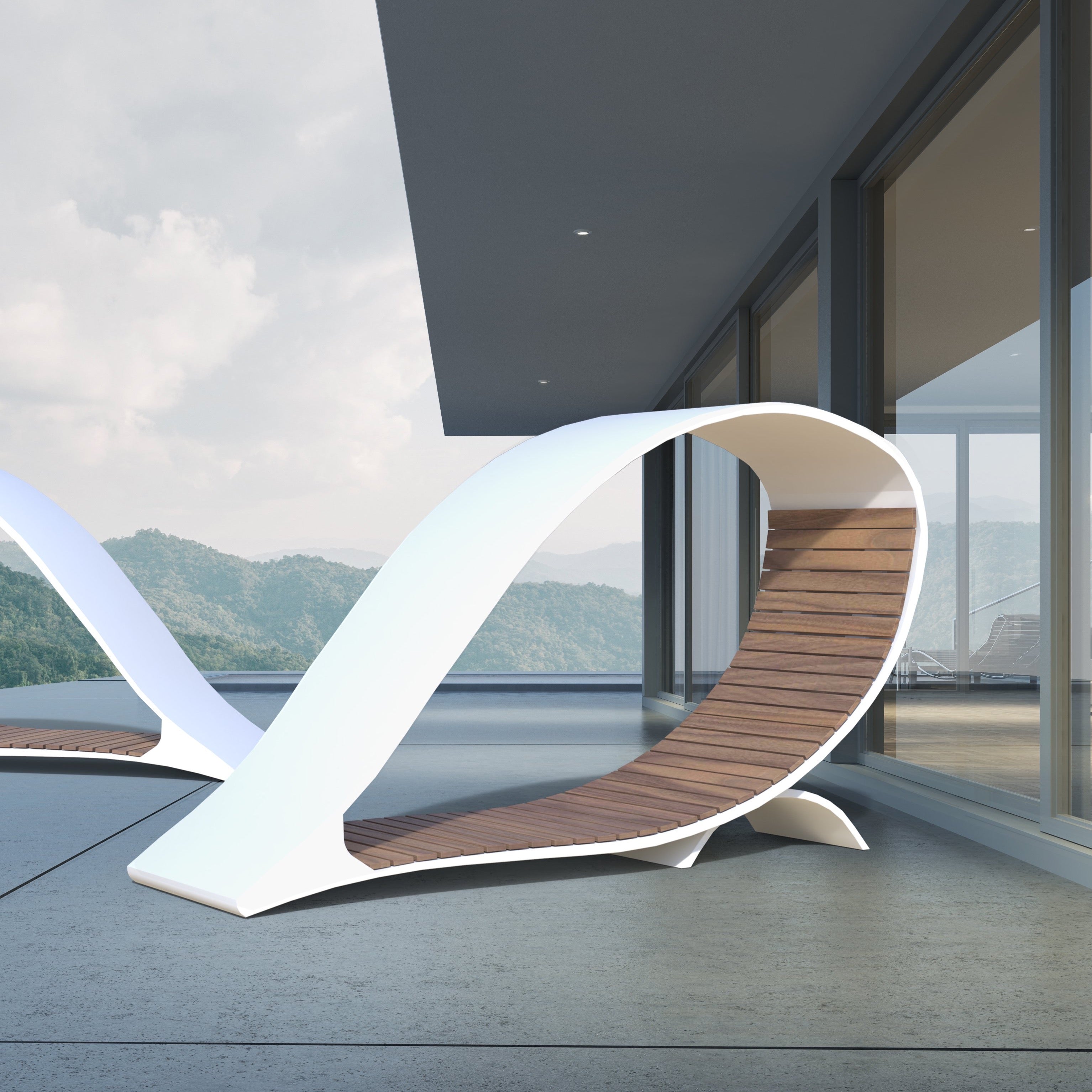 Are you looking for an alternative to the usual outdoor furniture, an eye-catcher for your company headquarters or for the beach promenade? We have you! Shapely, distinctive and durable. Our outdoor furniture is elaborately handcrafted from recycled wind power rotor blades. Each piece is unique. The almost indestructible material is refurbished and finished with seats made of larch wood in "natural" or "flamed" look.