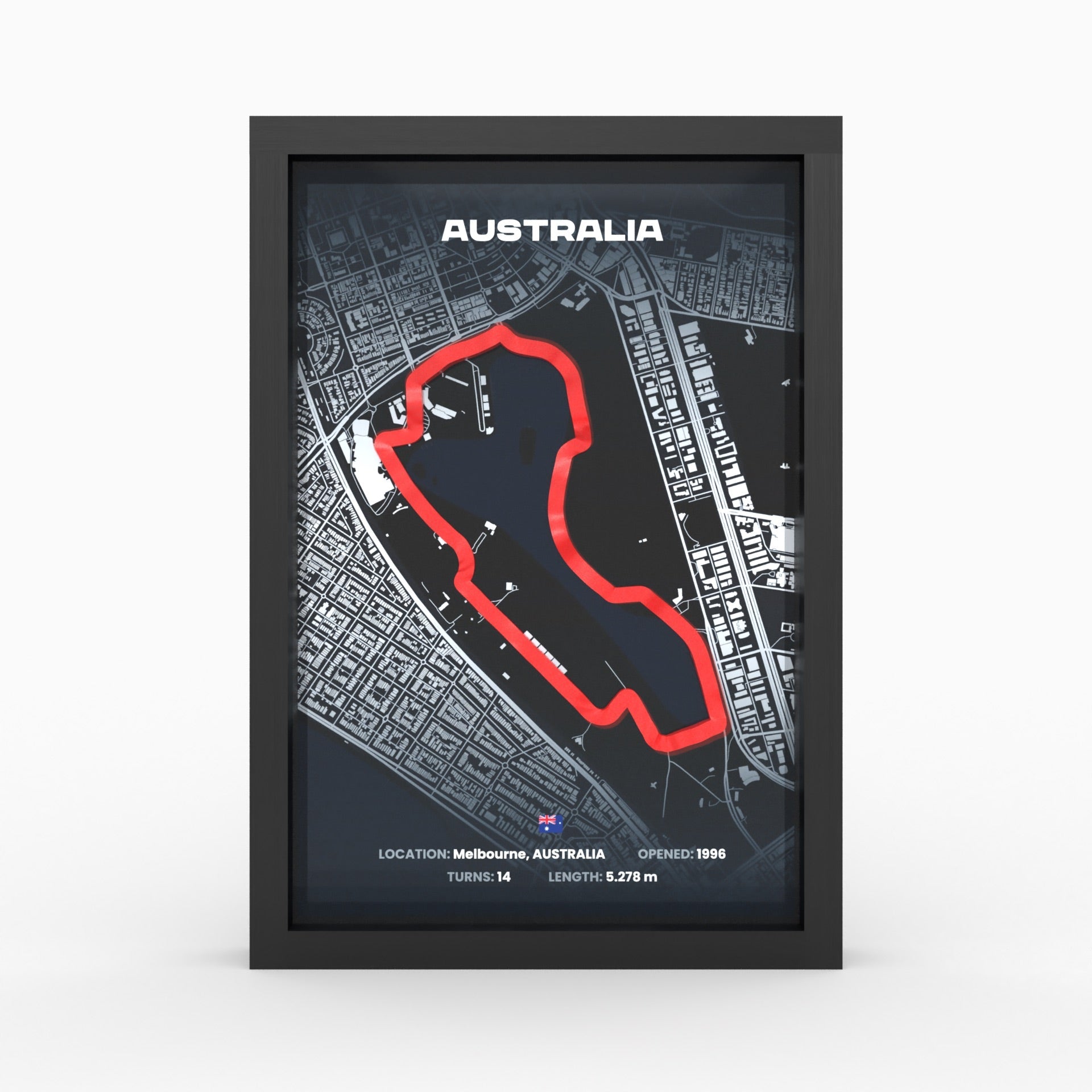 Dieses 3D-Poster verbindet moderne Technologie mit traditioneller Handwerkskunst und bietet eine beeindruckende Darstellung des Albert Park Circuit, die jedes Zuhause oder Büro bereichert.