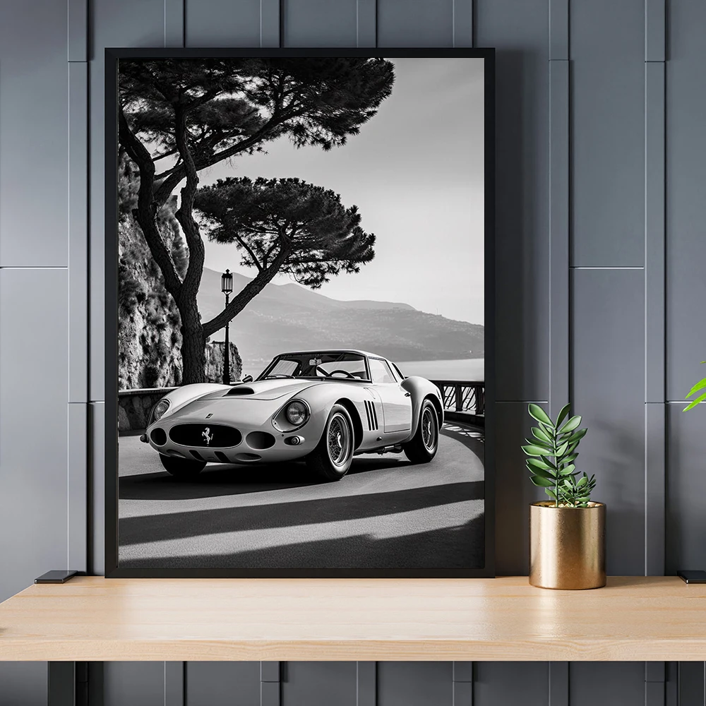 Berühmte Autos Schwarz-Weiß Poster – 1962 GTO Retro Supercar Leinwanddruck für stilvolle Wanddekoration